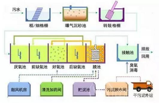 注意:對滿足更為嚴(yán)格的出水標(biāo)準(zhǔn),對A+MBR工藝進行不同工藝組合工藝再此不做分享。分享一組合工藝流程供大家參考。