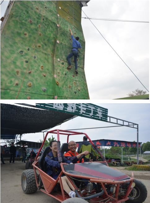 茫茫林海山間的無隱寺,這里環(huán)境幽靜。站在寺前極目遠(yuǎn)眺,遠(yuǎn)山近嶺盡覽眼底,美不勝收。 大家在九龍山風(fēng)景區(qū)體驗(yàn)了履帶滑草、越野卡丁車、攀巖等戶外運(yùn)動(dòng)項(xiàng)目,大家投身于舒緩的春游園活動(dòng),走向大自然,在茂林修竹之中快樂前行。