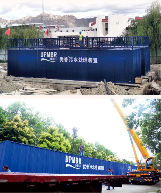 佇立在西藏貢嘎機(jī)場(chǎng)正在接受安裝的優(yōu)普MBR污水處理裝置,在藍(lán)天白云下,在鮮艷的五星紅旗的映襯下,顯得格外注目。那是一套300噸/日的優(yōu)普MBR,為正在進(jìn)行的機(jī)場(chǎng)改擴(kuò)建承擔(dān)起臨時(shí)排污處理工作。