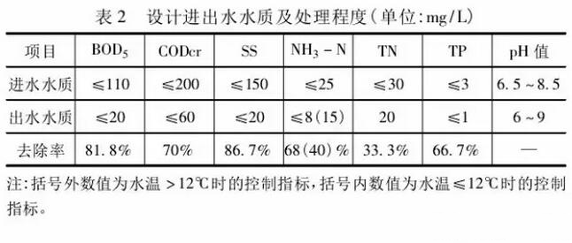 鄉鎮污水經污水處理廠處理后的尾水最終排入附近的地表水域,《福建省人民政府關于加快推進鄉鎮生活污水處理設施建設的實施意見》及《小城鎮污水處理廠工程建設標準》(建標148-2010)要求,規模3000m3/d以下(lll類)的鄉鎮污水處理廠排放標準執行《城鎮污水處理廠污染物排放標準》(GB18918)三級排放標準,對水體有特殊要求的,按環評要求執行。 由于鄉鎮污水主要為生活污水,處理難度不大,而對于設置有除磷脫氮功能的二級處理工藝的污水處理廠其排放標準由二級提高到一級B標準,從建設投資來看僅增加20%左右,從管理角度看由于總體流程沒有變化,管理難度基本相當,因此從技術、投資和管理的角度來看,鄉鎮污水處理廠采用一級B標準是合理、可行且易于達到的,因此,鄉鎮污水設計出水水質主要指標參考表2。