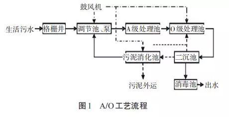 在美麗鄉村建設理念的推進下,目前農村經濟發展很快。殊不知,在農村發展經濟的過程中同樣被環境污染問題所困擾。大多數農村地區缺乏健全的污水處理污水設備,其農村生活污水大多數直接被排入河流,對農村生態環境造成了嚴重影響。所以,目前急需采用先進的污水處理工藝治理農村農村生活污水問題。一體化污水處理設備有著管理方便、工作效率高、能耗低、投資小及其占地面積小等優點,特別適合在農村地區使用。基于此,此文就農村生活污水一體化處理污水設備工藝進行簡要分析。 一體化污水處理設備工藝介紹 所謂污水可生化性,就是指污水中含有的污染物通過微生物的生命活動來改變污染物的化學結構,因此改變污染物的化學和物理性能所能達到的程度。生物處理就是指微生物借助污水中的有機物維持生命特征、開展生命活動,并借助新陳代謝實現對污染物的清除。所以,必須對水里污染物的含量通過試驗、測算的方法來確定,繼而判斷其是否能進行微生物處理。 BOD5與COD是比較常用的水質指標,借助B/C比實現可生化性評價是一種的方法。當B/C比值大于時,可以對污水進行可生化處理。隨著兩者比值的增大,其可行性隨之增大。在實際微生物處理中,不需要將有機物完全分解為水、硝酸鹽及二氧化碳,只要保證其成分達到規定標準即可。 就一體化污水處理設備工藝而言,以活性污泥法為例,其較為成熟的工藝包括A/O法、A2/O法及其他改進工藝等。其中,A/O脫氮法就是指缺氧—好氧法,而A/O除磷法就是指厭氧—好氧法,在污水經過相應區域時借助各種微生物菌的分解作用,促使氮、磷及有機物等污染物得到有效去除。 A/O主體工藝原理 厭氧—好氧活性污泥法(Anoxic/Oxic,簡稱A/O)是由厭氧和好氧兩部分反應組成的污水生物處理工藝。污水進入厭氧池后,與回流污泥混合。活性污泥中的聚磷菌在這一過程中大量吸收污水中的BOD,并將污泥中的磷以正磷酸鹽的形式釋放到混合液中。混合液進入好氧池后,有機物被氧化分解,同時聚磷菌大量吸收混合液中的正磷酸鹽到污泥中。由于聚磷菌在好氧環境中的吸磷量要遠遠大于其在厭氧環境中的釋磷量,因此,污水經過“厭氧—好氧”的,達到除磷目的。 AO工藝特點 采用A/O工藝作為主體工藝的一體化污水處理設備具有除磷功能、脫氮功能及減少有機物功能等,其能有效避免出現污泥膨脹現象,并且操作極其簡便。并且填料比表面積較大,池內具有良好的充氧條件,生物接觸氧化池內單位容積的生物固體量高,再加上污泥回流,反應池內活性污泥濃度較高,因此兼有活性污泥法的特點,具有較高的容積負荷。由于生物固體量多,當有機容積負荷較高時,其F/M比可以保持在一定水平,因此污泥產量能保證不大于經活性污泥法所產生的污泥量。并且該工藝操作十分簡單、運轉成本較低、處理效果良好、運行穩定,完全可以滿足污水治理要求,保證污水能達到排放標準。 AO工藝流程 如圖1所示,生活污水經格柵井流入調節池后,由污水泵抽送至A級兼氧池,兼氧池內掛有彈性填料,借助填料中兼氧細菌自身的吸附水解作用,使污水中對生物細菌有抑制作用和難以生物降解的有機物水解,同時將大分子有機物水解為小分子有機物,并對固體有機物進行降解,減少了污泥量,降低污水中懸浮固體的含量。同時,利用污水中的有機物作為碳源,使從后級好氧段回流的硝化液中的亞硝酸鹽氮、硝酸鹽氮經過兼氧細菌作用后,形成氣態氮從污水中逸出,實現污水脫氮目標,降解污水中的有機物,提高污水的生化可降解性,同時有效除去污水中的懸浮物及氨氮。兼氧池出水進入O級好氧接觸氧化池,好氧池內好氧微生物在水體中有充足溶解氧的條件下,利用污水中的可溶性污染物進行新陳代謝,達到去除污水中可溶解性污染物的目的。好氧池出水自流入二沉池,污水中大部分懸浮物在二沉池中能得以有效去除。二沉池出水自流入中間水池儲存,中間水泵再提升至沙過濾器,去除懸浮雜質、顆粒及膠體等雜質,確保出水達到排放標準后消毒排放。