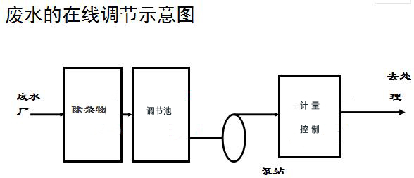 在線調節的流程是全部廢水流量均通過調節池,可以大幅度地調節廢水的成分和流量,但能源消耗大。